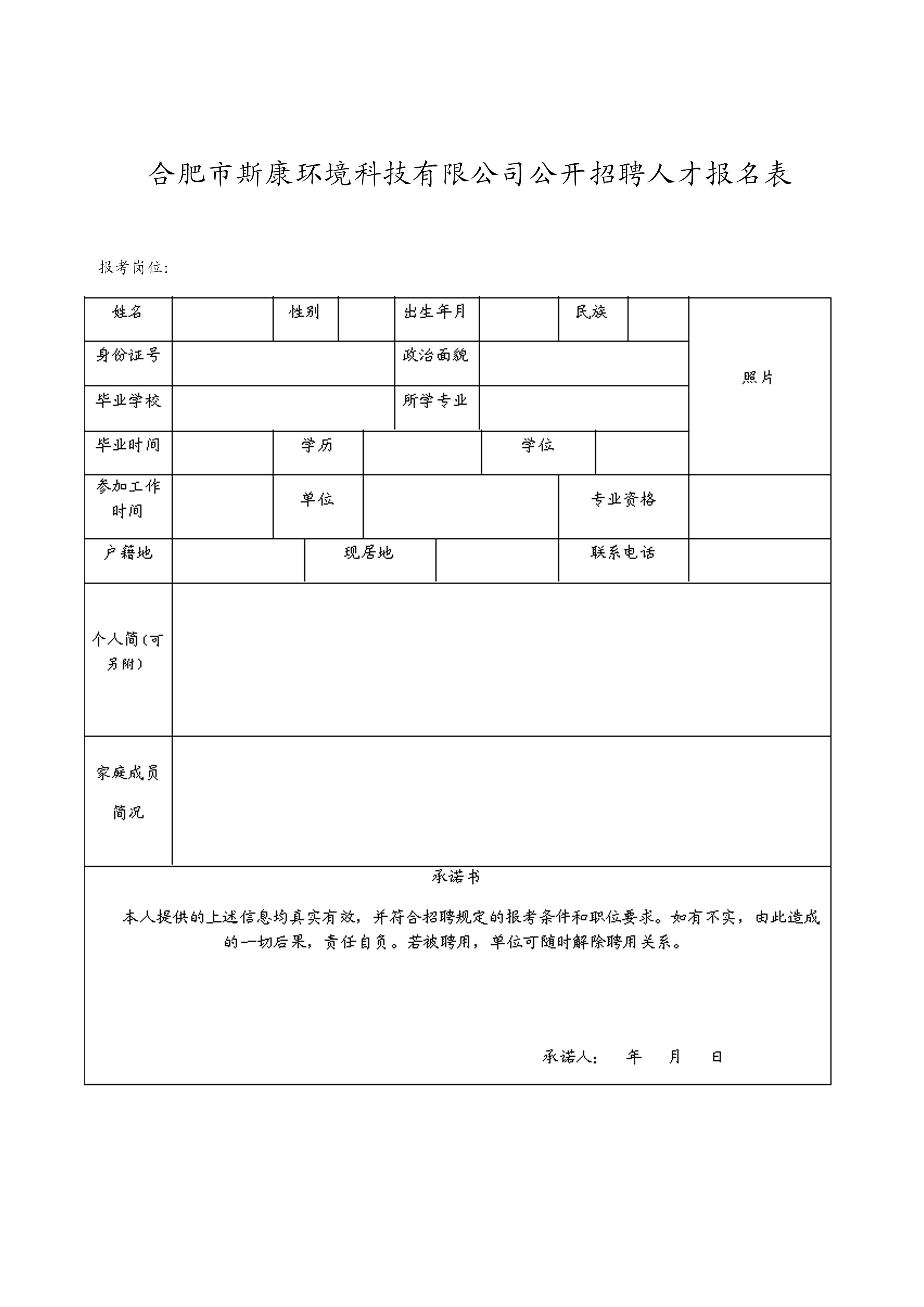 附件下載:合肥市斯康環(huán)境科技有限公司公開招聘人才報(bào)名表.doc